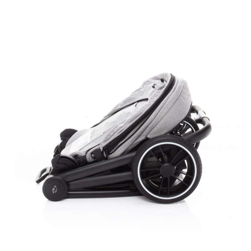 Caruciorul se pliaza in doar cateva clipe gratie sistemului facil pozitionat pe mijlocul manerului. Este foarte compact si se poate depozita in spatii mici sau pentru a-l lua cu voi in masina atunci cand iesiti in oras sau mergeti in calatorii. Rotile sunt mari, dotate cu suspensii pentru plimbari cat mai line pe orice tip de teren chiar si pe terenuri accidentate. Rotile din fata sunt pivotante si au sistem de blocare cand circulati cu caruciorul pe suprafete drepte.