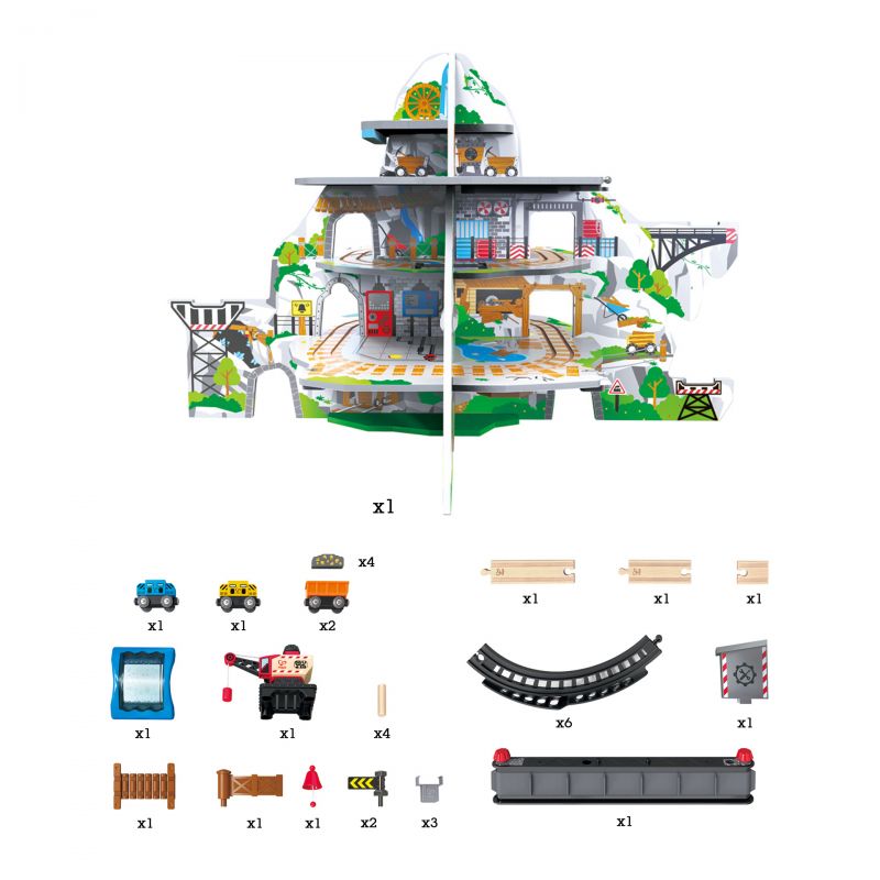 Hape Jucarie din lemn - Set tren si mina in munte (32 piese)